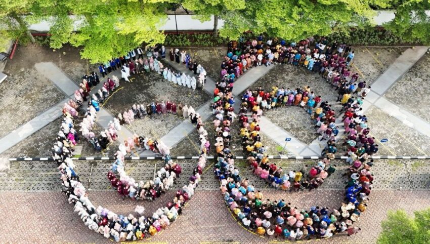 Menjelang akhir acara, seluruh peserta membentuk formasi angka “60” yang diabadikan melalui video drone. Dari atas, formasi itu tampak begitu rapi seolah menggambarkan soliditas dan semangat kolektif seluruh insan BRK Syariah.